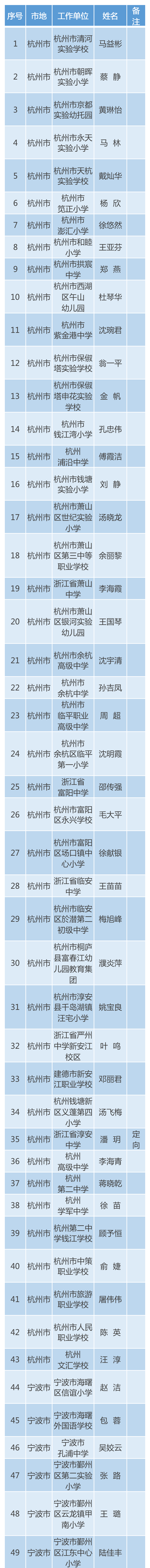 2021年浙江省中小學(xué)教壇新秀候選人名單