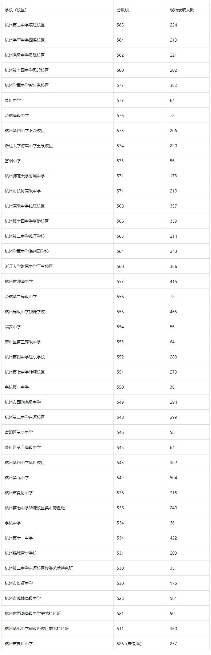 2022年杭州市區(qū)各類高中招生集中統(tǒng)一第一批錄取學校錄取分數(shù)線