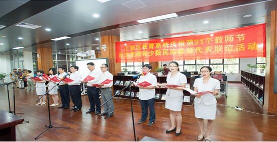 《杭州超限教育中心王林2015年9月8日訊》舉國(guó)歡慶中國(guó)人民抗日戰(zhàn)爭(zhēng)暨世界反法西斯戰(zhàn)爭(zhēng)勝利勝利70周年的振奮人心的節(jié)日氣氛還未散盡。9月7日下午,上城區(qū)全體民主黨派和少數(shù)民資教師在新落成的北師大附屬杭州中學(xué),再次為幸福包圍。區(qū)教育系統(tǒng)慶祝第31個(gè)教師節(jié),民主黨派和少數(shù)民族教師代表聯(lián)誼活動(dòng)在這里隆重舉行。上城區(qū)區(qū)委統(tǒng)戰(zhàn)部副部長(zhǎng)毛健兒,上城區(qū)教育局副局長(zhǎng)朱惠強(qiáng)與全區(qū)眾多民主黨派與少數(shù)民族教師代表濟(jì)濟(jì)一堂共慶教師節(jié)。此次活動(dòng)旨在慰問(wèn)長(zhǎng)期以來(lái)為上城教育作出突出貢獻(xiàn)的民主黨派教師與少數(shù)民族教師,同時(shí)進(jìn)一步充分發(fā)揮其上通下達(dá)、言路暢通、聯(lián)系面廣的優(yōu)勢(shì),為促進(jìn)上城教育事業(yè)的機(jī)制創(chuàng)新和持續(xù)進(jìn)步,實(shí)現(xiàn)上城教育的高質(zhì)量發(fā)展貢獻(xiàn)新的力量。