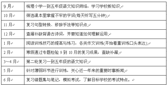 語(yǔ)文復(fù)習(xí)規(guī)劃表
