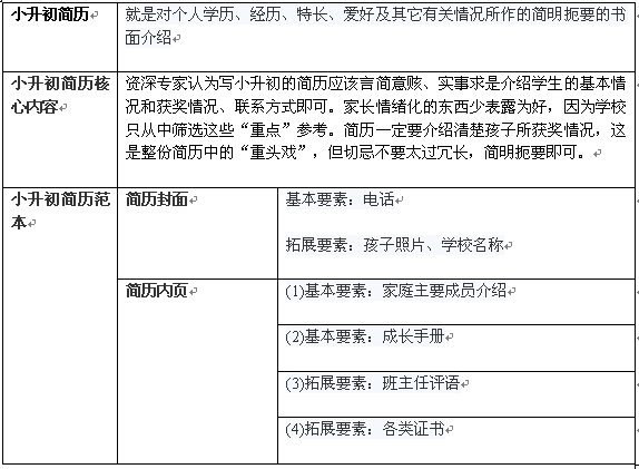 優(yōu)秀小升初簡歷要點(diǎn)