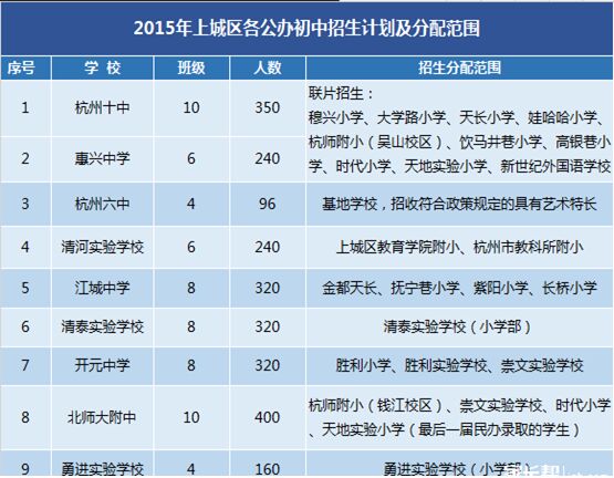 2015年杭州上城區(qū)公辦初中招生計劃及分配范圍