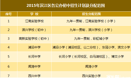 2015年杭州濱江區(qū)公辦初中招生計(jì)劃及分配范圍