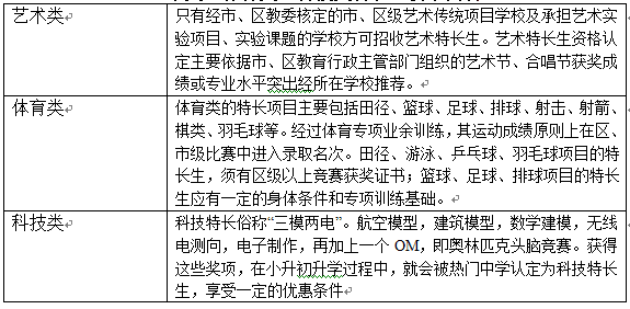 藝術類、體育類、科技類特長生要求內(nèi)容