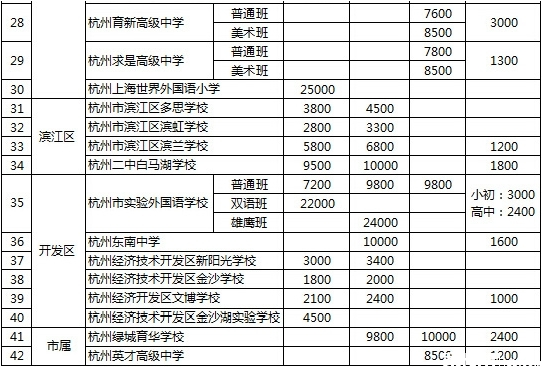 《杭州超限教育中心李林2016年04月06日訊》忙完每年的小升初前期招生工作,另一個方面家長較為關(guān)心是事情無非就是各個學校的收費情況,現(xiàn)整理相關(guān)杭州各個民辦學校學費情況如下: