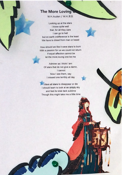 《杭州超限教育中心李林2016年04月19日訊》3月18日至25日,我校國(guó)際部舉行了“門(mén)前小詩(shī)”活動(dòng)。此次活動(dòng)以體會(huì)身邊的詩(shī)意,萌發(fā)文學(xué)的種子為主旨,力求學(xué)生們能夠體會(huì)詩(shī)歌的魅力并且培養(yǎng)自身文學(xué)素養(yǎng)。