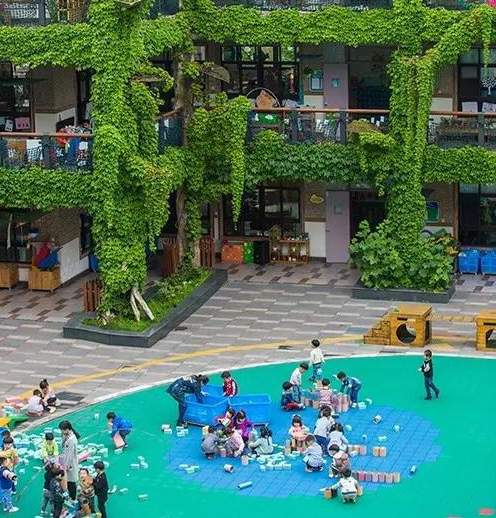 從圖片上看,樓外布滿各種爬藤植物,遠(yuǎn)看就像一座巨大的綠房子。一股大自然的清新氣息撲面而來,美得一塌糊涂!這所幼兒園照片讓許多人心生羨慕