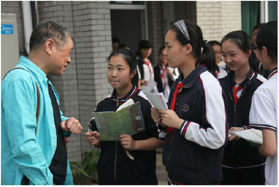 《杭州超限教育中心李林2016年05月20日訊》繼四月份的名家進校園活動后,5月18 日,由江干區(qū)少工委、江干區(qū)教育局團工委、江干區(qū)青少年活動中心、江干區(qū)教育發(fā)展研究院向全區(qū)中小學(xué)生聯(lián)合舉辦的2016年江干區(qū)青少年讀書月名家進校園系列活動走進了采荷實驗學(xué)校。該活動開展以來,以“讀經(jīng)典書香添底蘊,閱成長慧迎G20”為目的,受到了各中小學(xué)的歡迎和好評。本次活動我們有幸邀請到了八年級上冊《臺階》一文的作者,李森祥老師,給采實師生帶來一場精彩紛呈的講座。