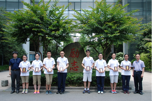 《杭州超限教育中心李林2016年06月15日訊》6月14日中午,我校在“勵志”碑前舉行第十一屆“校園文學之星”的頒獎儀式。校教學處主任、校刊主編、省特級教師王守洪老師代表學校為裘天予等九位同學頒發(fā)榮譽證書,并勉勵各位同學繼續(xù)努力閱讀,積極寫作。