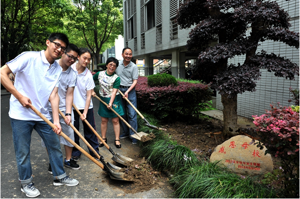 為答謝2016屆學子對母校的拳拳愛意,學校于6月10日上午在行政樓前舉行了植樹儀式。陳萍校長、馮定應(yīng)副校長、校辦主任朱高雄、教學處副主任黃曉博等學校領(lǐng)導, 2016屆年級組長徐小芳,還有畢業(yè)生代表和家長代表們共同見證這一時刻。