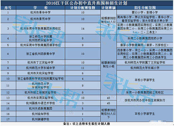 《杭州超限教育中心李林2016年07月26日訊》杭州小升初,相信除了民辦初中的招生火爆之外,公辦中學(xué)的招生也是一樣火爆的。對(duì)于很多考慮就讀公辦中學(xué)的家長(zhǎng)和孩子來說,公辦中學(xué)的招生計(jì)劃也是特別需要了解的。下圖是杭州市江干區(qū)公辦中學(xué)最新的招生計(jì)劃表,家長(zhǎng)可根據(jù)自身情況合理準(zhǔn)備。
