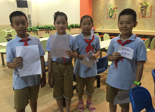 我們從家長志愿者那里,抽簽?zāi)玫搅艘环萑蝿?wù)卡,尋訪第二課堂,并根據(jù)任務(wù)卡要求完成相關(guān)任務(wù)。比如收集G20的祝福語;找陌生人合唱關(guān)于杭州的歌或朗誦詩;給陌生人送一份禮物等!罢夷吧撕铣P(guān)于杭州的歌或朗誦詩”做這個任務(wù)這時我們被拒絕了好幾次,后來終于找到了“救星”,我們一起朗誦了《憶江南》,還得到了很多掌聲!