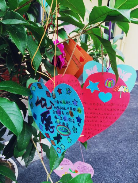放飛一個(gè)美好心愿:小學(xué)生進(jìn)校園時(shí)人人手中拿著一張愛心心愿卡,孩子們用稚嫩的手一筆一劃、工工整整地寫下了對(duì)新學(xué)校的期待。當(dāng)孩子們親手將心愿卡掛到班級(jí)樹上之時(shí),一個(gè)個(gè)美好的心愿也在此被放飛。