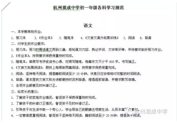 《杭州超限教育中心李林2016年11月25日訊》近日杭州觀成中學(xué)發(fā)布了學(xué)校對(duì)于初一學(xué)生的學(xué)習(xí)規(guī)范,家長(zhǎng)們可以從中看出觀成中學(xué)的一些教育理念和管理方法,對(duì)于小升初擇校也有很大幫助。