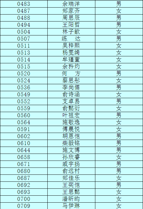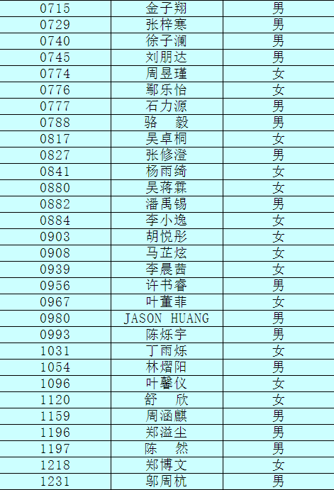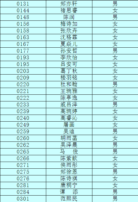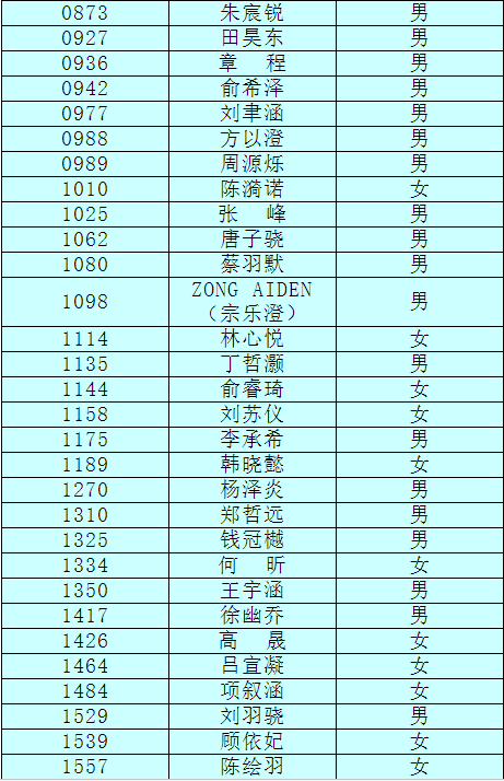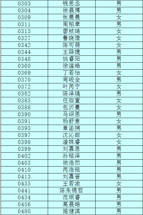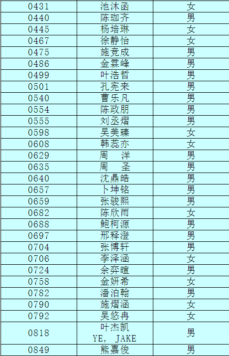 2.以下新生請(qǐng)于4月17日下午15:00至16:30簽訂《就讀杭州市崇文世紀(jì)城實(shí)驗(yàn)學(xué)校承諾書》并繳費(fèi),逾期視為放棄。