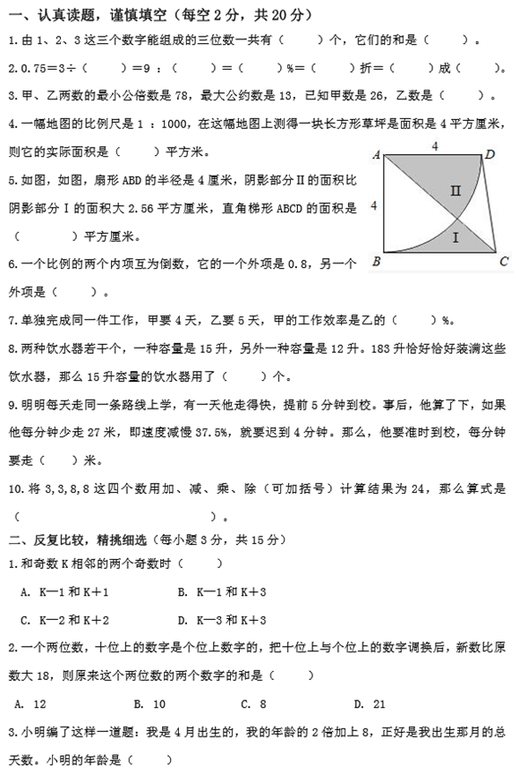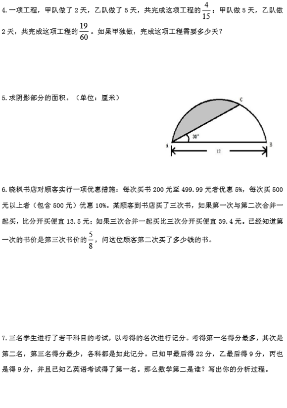 杭州育才中學(xué)小升初新生入學(xué)考試試題(一)
