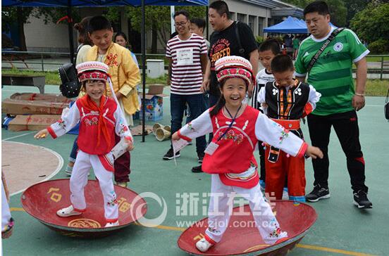 “腳穩(wěn)住,用腰部的力量,用腰!腰!腰!”杭州市濱江區(qū)濱虹學校的校園里傳來陣陣歡聲笑語,同學們正玩畬族游戲“下?lián)u鍋”玩得不亦樂乎。