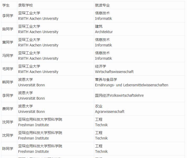 英特外國(guó)語(yǔ)外語(yǔ)特長(zhǎng)實(shí)驗(yàn)班(德國(guó)方向)首屆畢業(yè)生全部順利畢業(yè),其中50%的學(xué)生提前進(jìn)入德國(guó)精英大學(xué)本科(亞琛工業(yè)大學(xué)和波恩大學(xué)),另外50%的學(xué)生按原學(xué)制全部順利進(jìn)入德國(guó)亞琛應(yīng)用科技大學(xué)預(yù)科學(xué)院學(xué)習(xí),其中一位同學(xué)選擇美國(guó)加州大學(xué)圣塔芭芭拉分校學(xué)習(xí)。